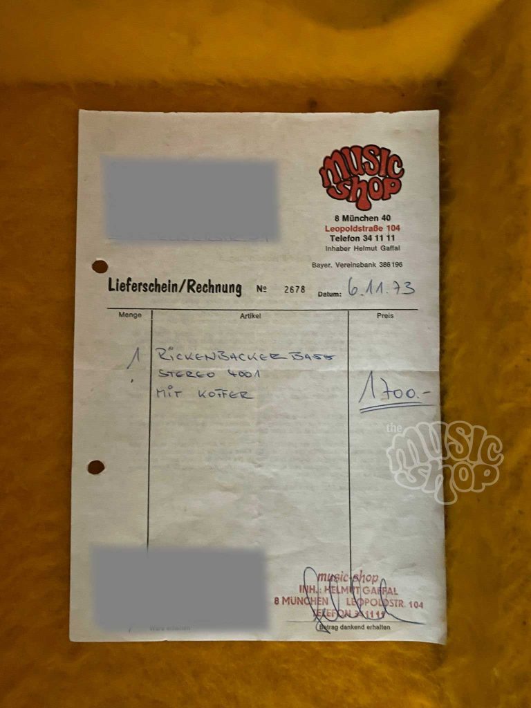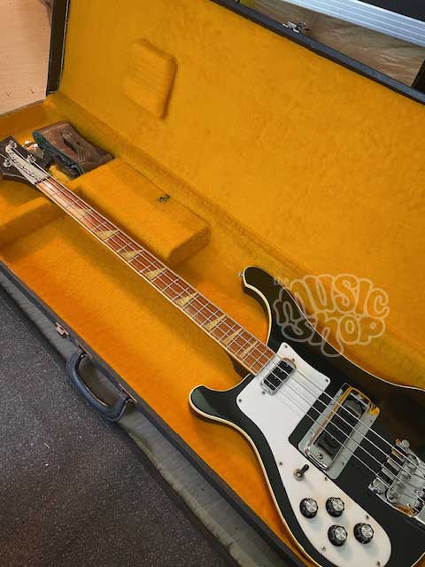 Ein Bass (Leftie) aus dem September 1973 siehe die Abbildung der Buchsenplatte mit der MI Prägung. Top Zustand. Mit dem Rick-O-Sound Ausgang. Inkl. Original Koffer und original Kaufbeleg. Und das von unserem Vorgänger.